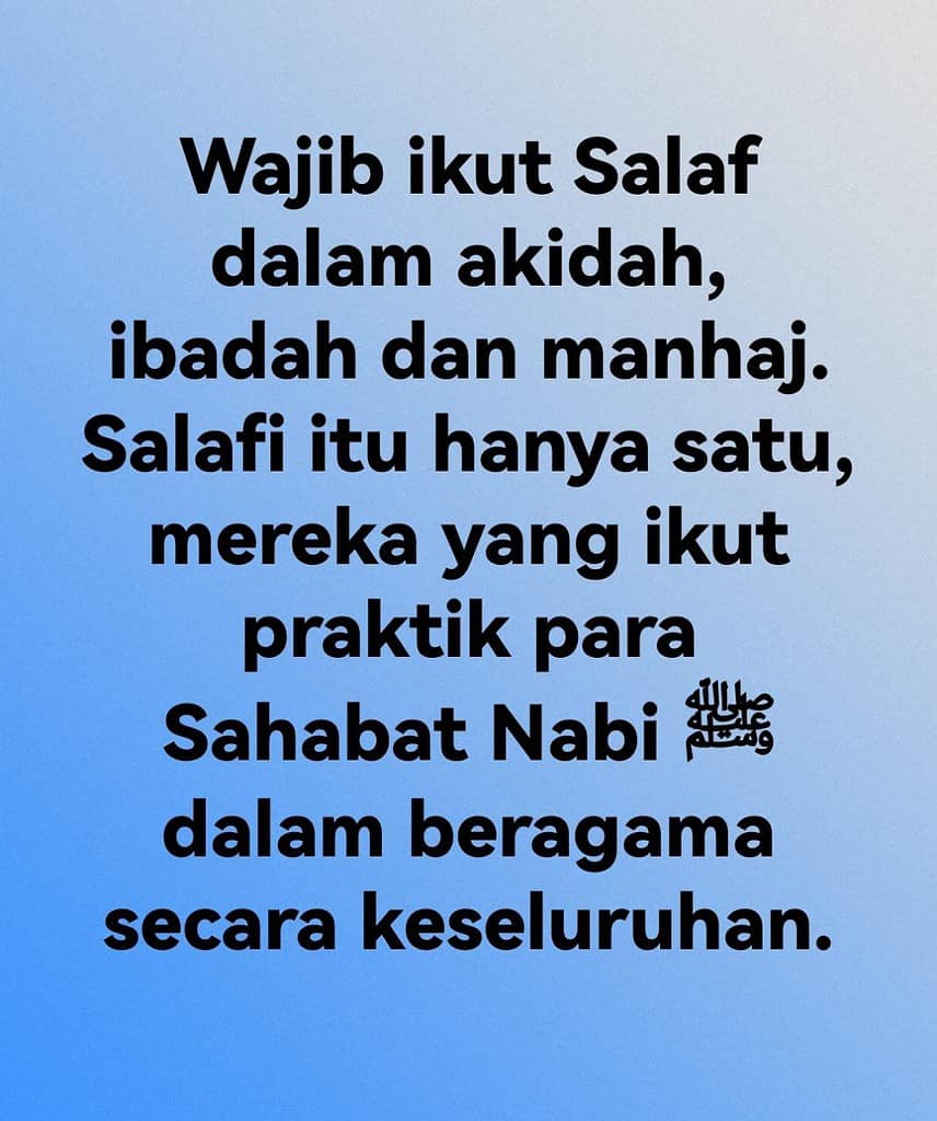 Muslim wajib ikut Salaf dalam akidah, ibadah dan manhaj. Manhaj Salaf merujuk kepada praktik para Sahabat Nabi ﷺ dalam beragama. Ini kerana para Sahabat adalah kaum manusia yang dipuji oleh…