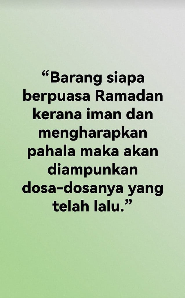 مَنْ صَامَ رَمَضَانَ إِيمَانًا وَاحْتِسَابًا غُفِرَ لَهُ مَا تَقَدَّمَ مِنْ ذَنْبِهِ وَمَنْ قَامَ رَمَضَانَ إِيمَانًا وَاحْتِسَابًا غُفِرَ لَهُ مَا تَقَدَّمَ مِنْ ذَنْبِهِ. “Barang siapa berpuasa Ramadan kerana iman dan mengharapkan…